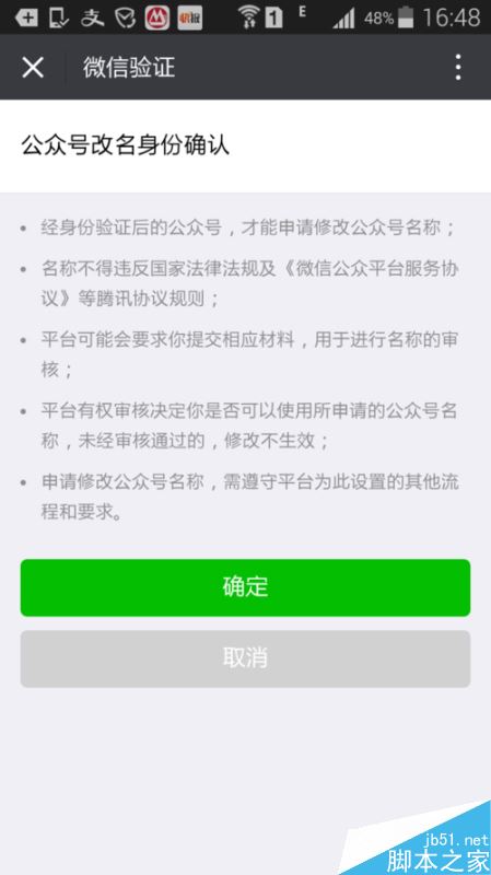 这时候我们的管理员私人微信就会收到我们修改微信公众号昵称的一些信息并且需要我们确认才行