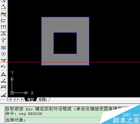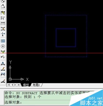 1、SU命令之后,先选大面域,确定后选要抛去的面域。