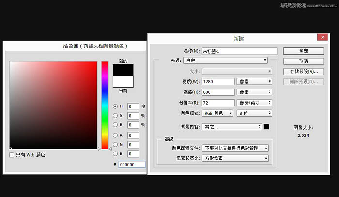 1、创建一个新的文档(不建议特别大),并填充背景为黑色。