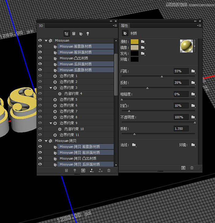 以上就是含蓄火车最近收集整理的关于PS利用3D工具制作多层次的金色立体字的全部内容,更多相关PS利用3D工具制作多层次内容请搜索靠谱客的其他文章。