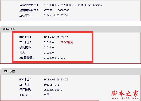 如果服务器等参数全部是0,说明路由器联网不成功的。