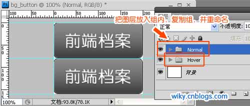 制作鼠标悬停状态下的按钮背景图,把图层放入组内,复制组,移动,并重命名,如下图: