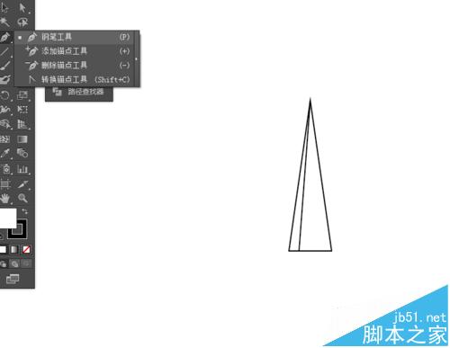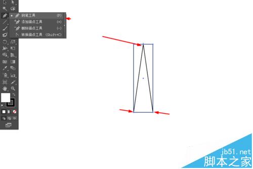 3、接着把矩形删掉,再选择钢笔工具,在三角形勾出一条路径,如图所示