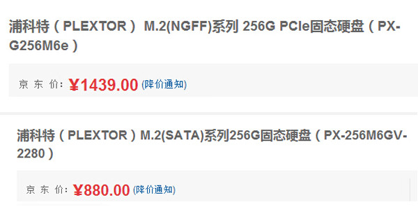 一分钱一分货,祖宗留下的道理是不会变。性能差异直接就体现在价格上,还是拿浦科特M6e与M6GV做个例子。在京东商城上,M6e 256G报价高达1439元,而M6GV 256G报价仅880元。