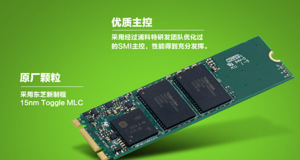 浦科特M6GV是一款走SATA通道的M.2 SSD,有128GB及256GB两种容量,其采用经过浦科特研发团队优化过的SMI主控,闪存来自东芝新制程15nm Toggle MLC闪存。虽然性能上与SATA SSD比起来没有太大优势,但贵在无外壳设计,纤薄,且价格跟SATA SSD差不多,是带M.2接口的超薄类笔记本升级不错选择。