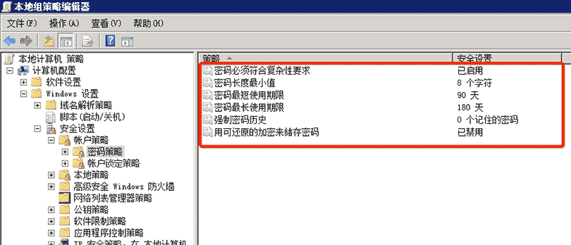 操作步骤打开 控制面板 > 管理工具 > 本地安全策略,在 帐户策略 > 密码策略 中,配置 密码最长使用期限 不大于90天。