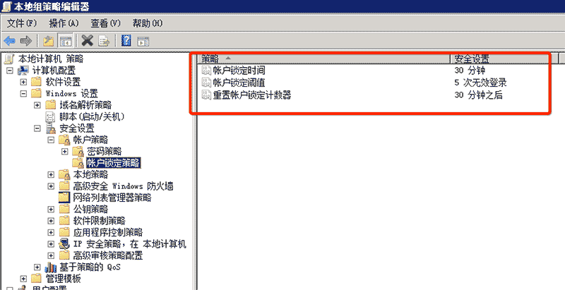 打开 控制面板 > 管理工具 > 本地安全策略,在 帐户策略 > 帐户锁定策略 中,配置 帐户锁定阈值 不大于10次。