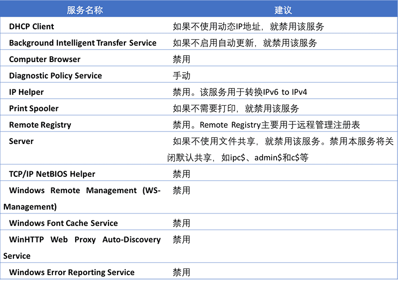 默认账户安全禁用Guest账户。禁用或删除其他无用账户(建议先禁用账户三个月,待确认没有问题后删除。)