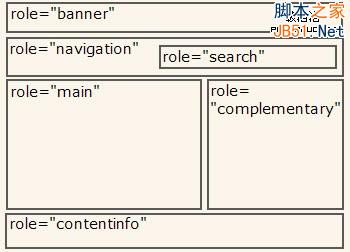 这个是成本最低的方法了,添加的方法就是给相应功能的元素添加role这个属性,并赋予响应的landmark值。一共有8个值,一般你只能用到6个:banner(banner)、complementary(辅助内容区)、contentinfo(网站信息和版权)、form(表单)、main(主内容区)、navigation(导航区)、search(搜索区)。如果一个表单,他仅仅是提供搜索功能,那么就将role设置为search,而不是form。