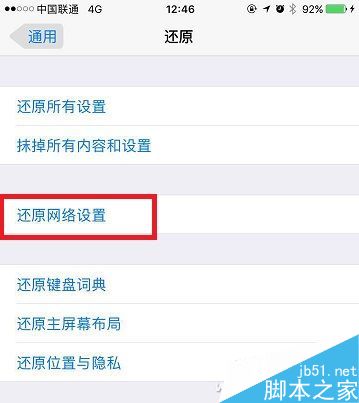 而苹果手机就更简单了,在“设置-通用-还原”中,选择“还原网络设置”,等待手机重启完毕就一切OK了。