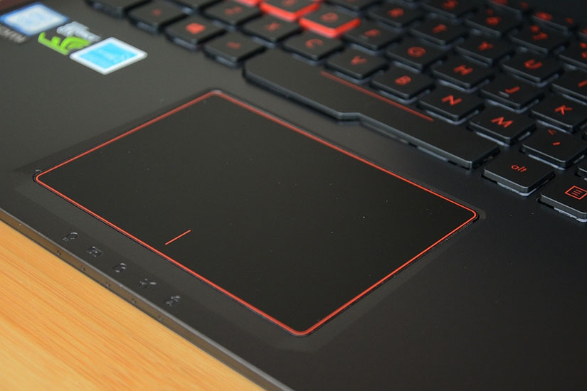 背光键盘,除了可关闭光源,还支持3级亮度调节。键程约2.3mm,但整体体验比较软,没有机械键盘的清脆刚毅。对于每天都打游戏的玩家,不妨添置一个机械。