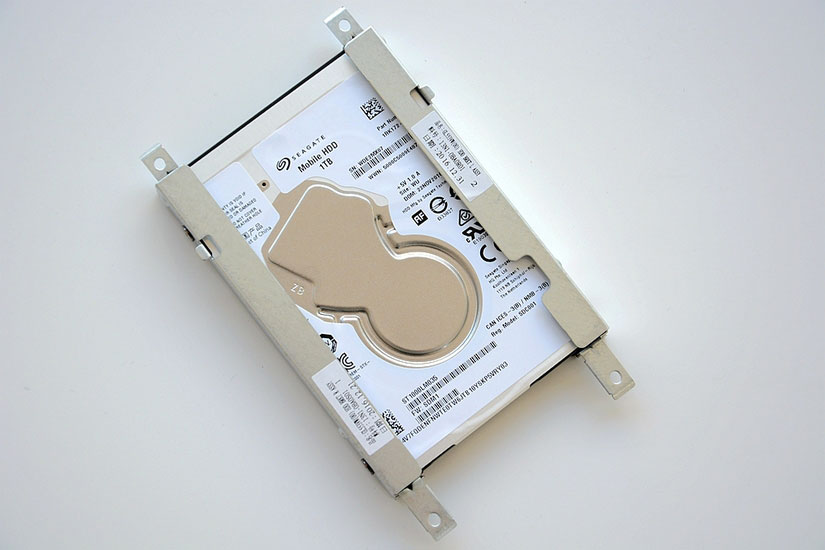 1TB机械硬盘,有固定架,4颗螺钉固定,很是牢固了。硬盘的侧面是音箱。