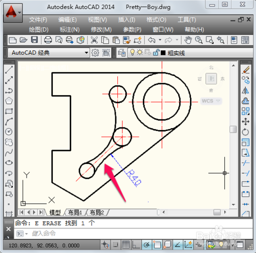 1、用cad画圆弧时如果已经知道半径,那么就更简单了。如图所画的圆弧,相切于两个圆,半径是40,此时cad怎么画圆弧呢?