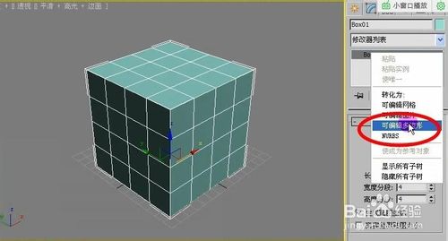 1、首先在透视图里画出一个正方体,设置好边长和分段数,分段数设为3。