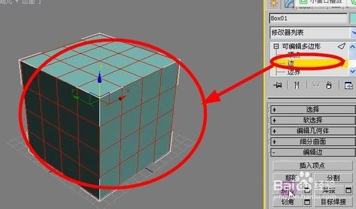 3、在可编辑多边形下选择“边”。