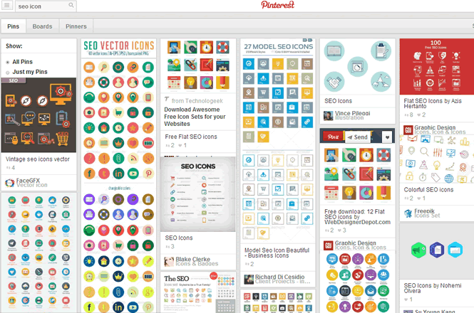 2)pinterest搜索:幸亏这个站国内还能访问,虽然这是老外的的一个图片分享站,但是里面关于seo的图片,图标或是信息图非常的多。最奇妙的是几乎没有任何水印的,这个对我们快速找图的人来讲很重要。因此,如果你要找一个内容丰富的图片作为插图可以试试这个。这个平台搜中文或是英文都可以找到图。