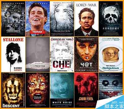 法国博主 Christophe Courtois 从 2010 年开始陆续把使用了相似设计语言的海报拼在一起,这些拼图很直观的显示出,近十年来许多好莱坞类型片都在重复使用一些相同的海报设计,比如背对背的男女主、比如一个孤独的大背影什么的。