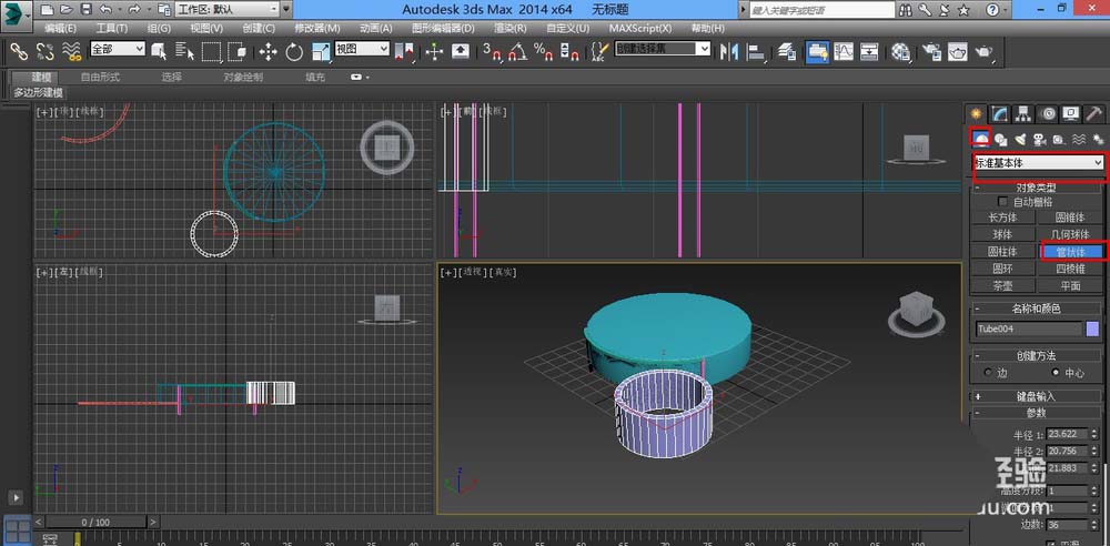 3、选择几何体,标准基本体,管状体,拉出管状
