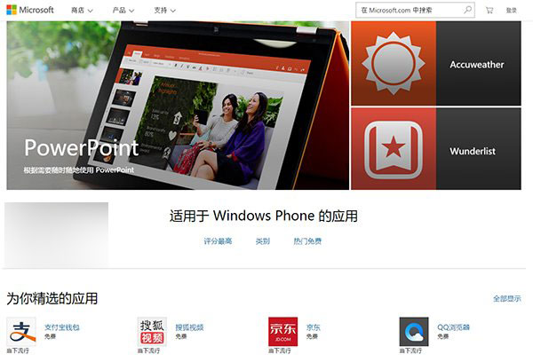 Win10应用商店网页版Windows Phone类别访问,点此链接。