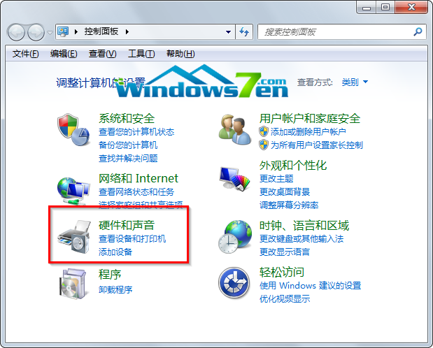 1.鼠标点击“开始”,点击控制面板—选择“硬件和声音”。如图1所示