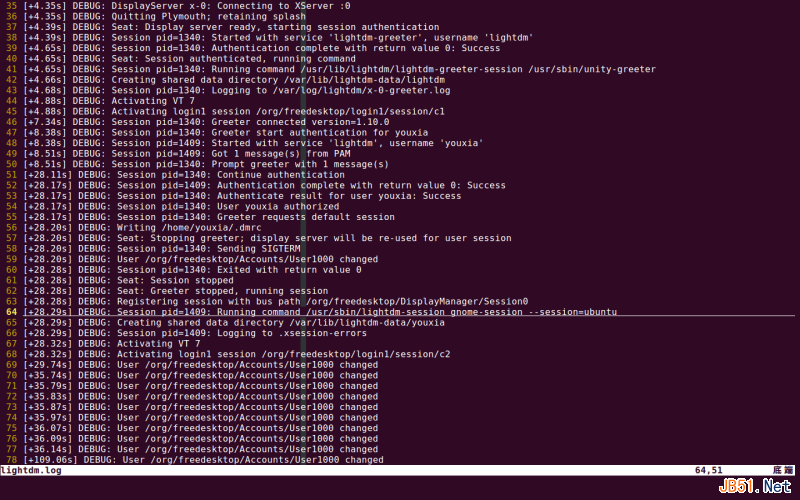 继续看log文件,下面光标所在的行显示lightdm怎么启动gnome-session: