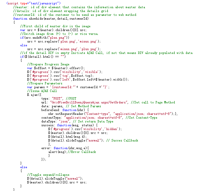 整个调用Web Method的ajax代码: