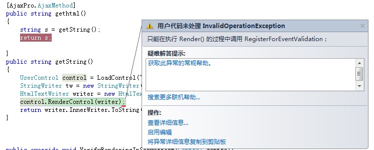 究其原因,原来是老赵的代码 继承了Page 然后使用VerifyRenderingInServerForm验证,二我的代码没有继承Page直接使用VerifyRenderingInServerForm 所以会造成