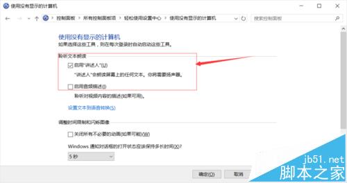 3、把“启用讲述人”前面的钩点击取消即可