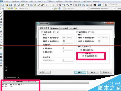 1、首先打开软件,CAD。在打开等轴平面,等轴测扑捉在命令行输入ds。