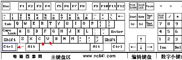 其实复制粘贴的快捷键非常简单,只要涉及到键盘中的3个按键盘,分别是:Ctrl键、C键与V键,如下键盘示意标注。