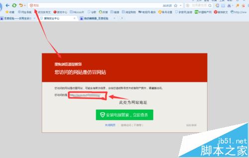 1、在浏览器中输入自己的网站地址,查看是否被标记为危险仿冒网站,如果被标记为危险网站,进行站长申诉即可。