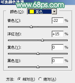 5、创建可选颜色调整图层,对黄色,绿色进行调整,参数设置如图11,12,效果如图13。这一步给图片增加橙红色。