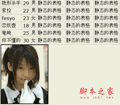 <td>静态的表格</d> <td>静态的表格</d> <td>静态的表格</d>