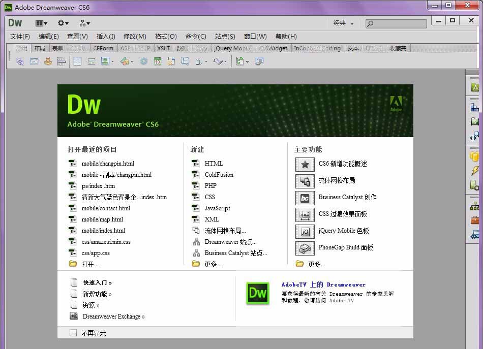 1、打开Dreamweaver软件应用程序,界面如下图所示,这里用的是cs6版本。