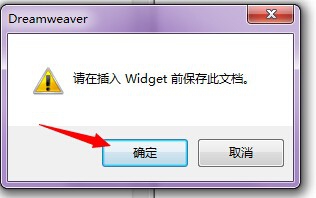 5、弹出”在插入widget前保存此文档“对话框,点击”确定“,如下图所示。