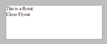 _flyout.show("This is a flyout.<div onclick="javascript:closeflyout()">Close Flyout</div>");