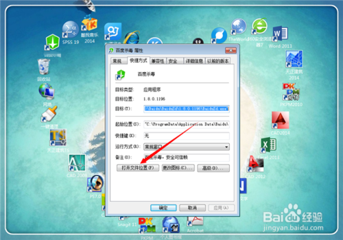 3、弹出属性的窗口,在这里,找到并点击“打开文件夹位置”。