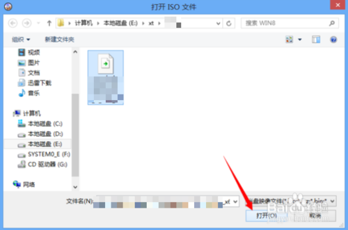 2、弹出“打开ISO文件”窗口---找到刚才下载好的win10 ISO文件--猛戳【打开】