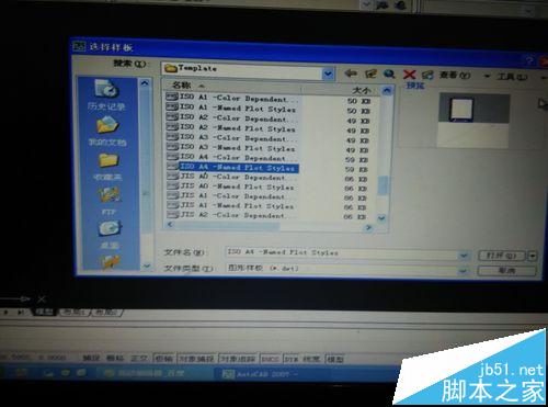 5、在对话框下拉菜单中找到需要打开的图纸,如打开“ISO A4 -Named Plot Styles”,然后点击打开它。