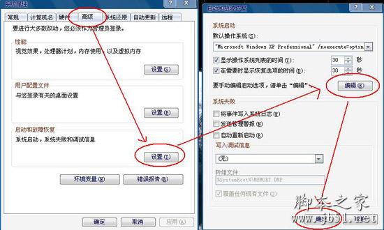 在桌面上右键点击“我的电脑”,然后在下拉菜单中选择“属性”,我们可以看到系统属性的窗口,接着我们点击上面的“高级”,在高级选项中,我们点击“设置”按钮,然后在弹出的界面中点击“编辑”按钮。