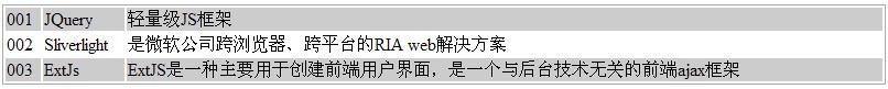 本示例大概功能是前台通过JQuery的Ajax调用一般处理程序(Handler),获取表格需要显示的信息,然后转换成json格式返回给前台,前台获取到数据后循环构建表格的行,最好把行附加到表里。