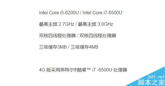 此次上架的尊享版相比之前标准版售价涨了1000元,配置最大的变化就是处理器由Skylake第六代酷睿i5 6200U升级到Core i7-6500U,虽然同样是双核四线程,但最高频率由2.7GHz提升到了3GHz,同时三级缓存3MB提升到了4MB。