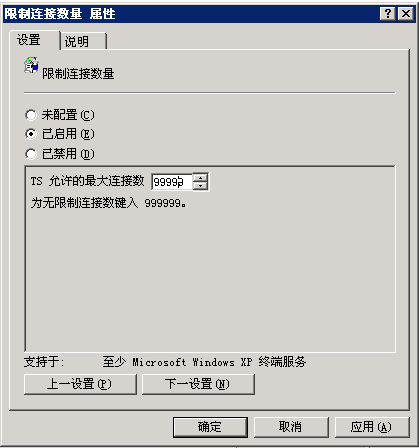 双击右边的”限制连接数量“-选择”已启用“-填入允许的最大连接数