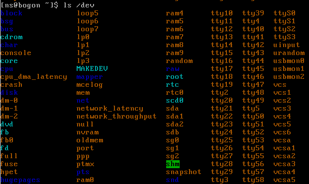 图为CentOS 6.5系统中/dev目录的部分内容。不同的计算机显示的内容大同小异。