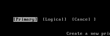 [New]--[Primary]--手动输入分区容量,以M为单位。回车,创建成功。