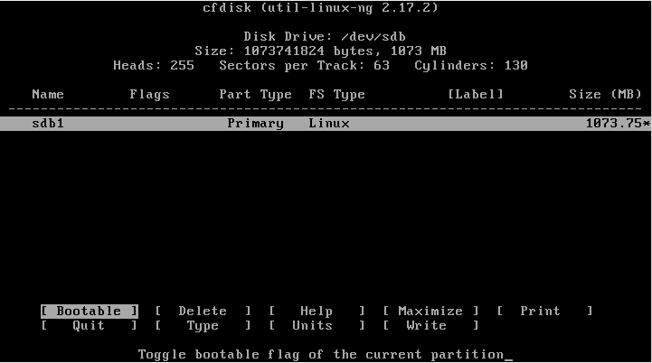 cfdisk /dev/sdb