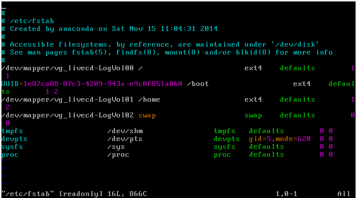 linux系统在启动时,会从/etc/fstab文件自动挂载分区。