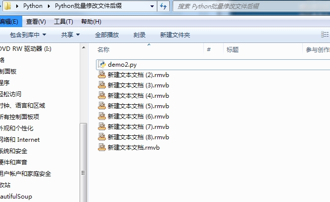 近期下载了很多各种教程, 但是不幸的是后缀名都是 ".mp4", 而本人喜欢 ".rmvb" 后缀,由于有轻微洁癖, 受不了后面的 ".mp4" 缀, 但是手动修改又太过繁琐, 所以用近期刚学的 Python 来偷懒吧 ! : )