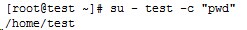 su - test -c "pwd"