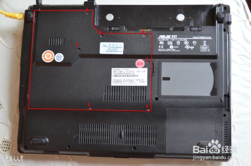 断电,拔除电源适配器,或者电池。将手提电脑翻过来,观察一下,一般有几个检修框,就下图而言,拆卸中间的大窗口就可以加载、更换内存条。